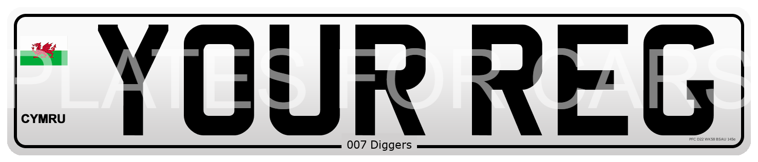 A front facing oblong numberplate with the Dragon Flag and Cymru.